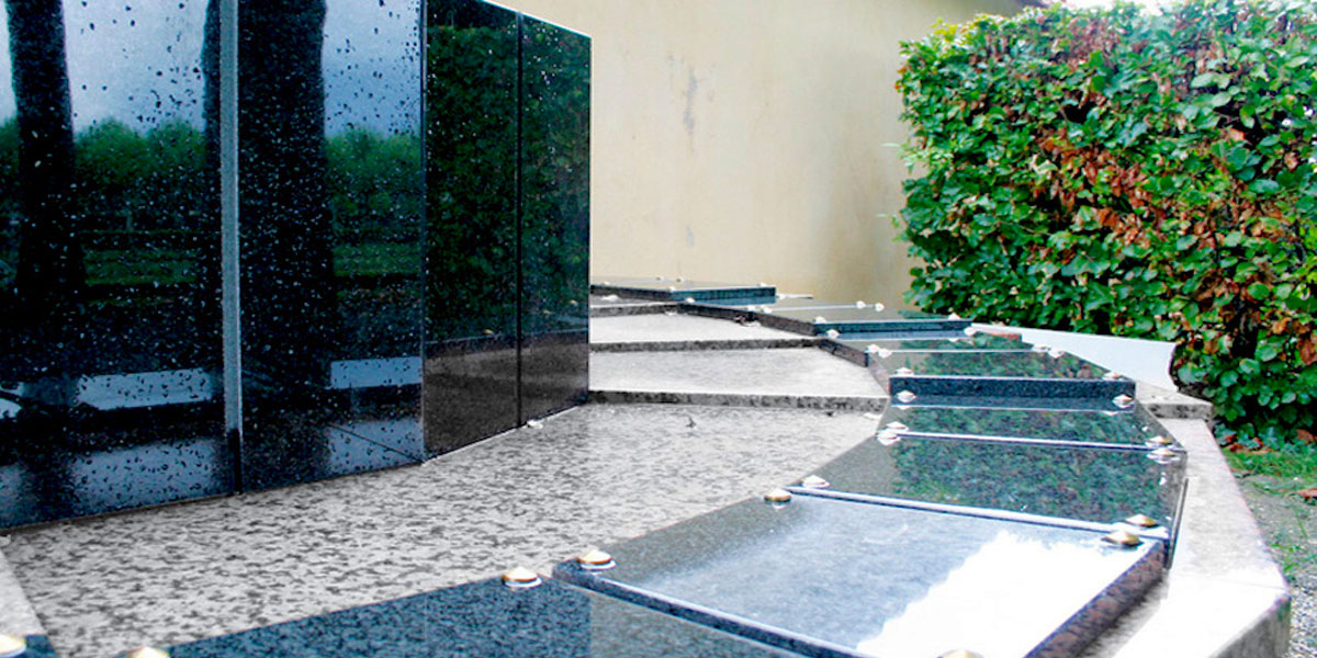 Modèle à huit pétales pouvant recevoir chacune de deux à quatre urnes. Les familles peuvent déposer des objets personnels sur le dessus de leur case.